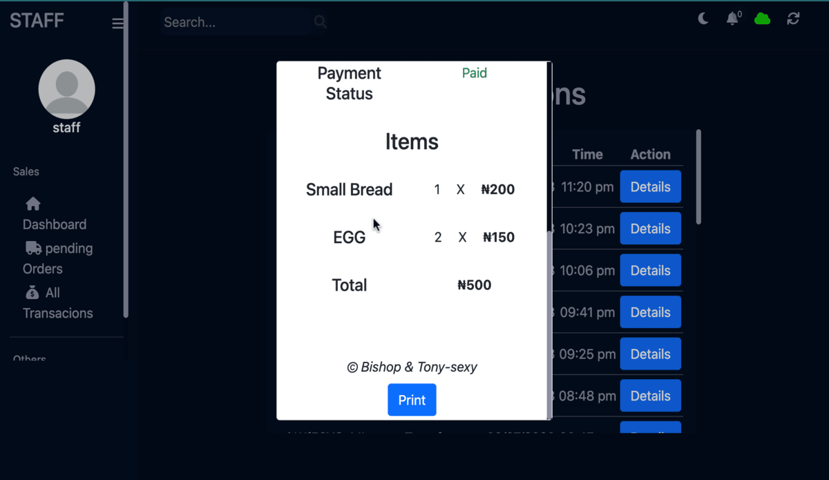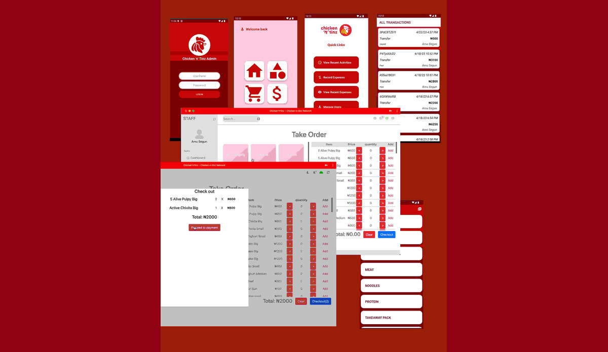 Tech integration into CHicken 'n' Tinz Management with admin mobile app to see and control all staff activities for the resturant. The app also calculates expenses and income and displays to the admin