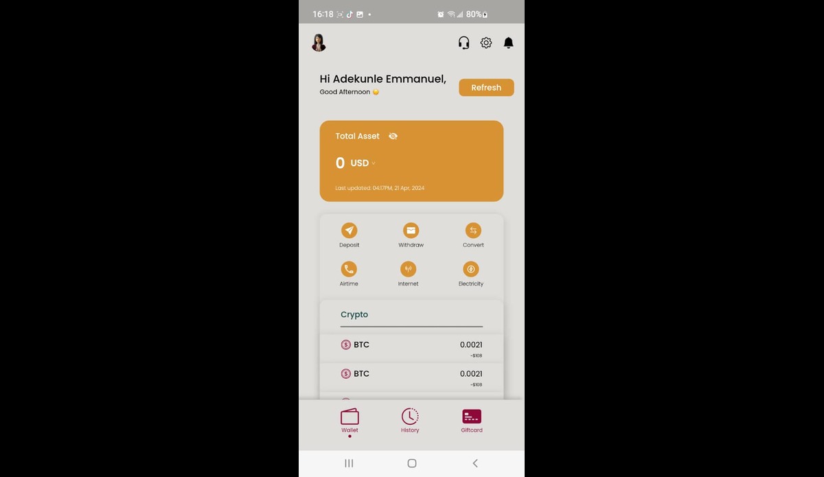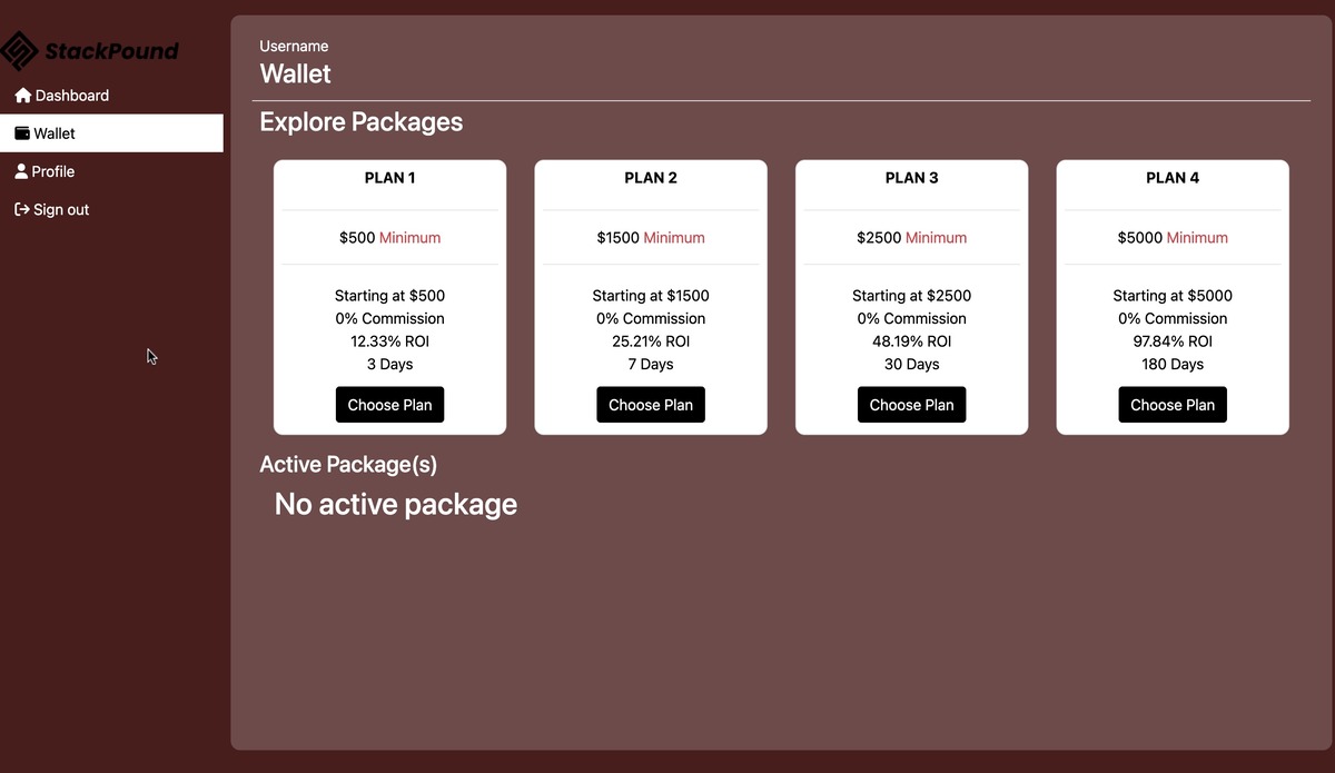 An investment website for crypto-currency. The user creates account and deposits crypto-currency into the account which is then approved by the admin and the investment begins to rise according to the package selected