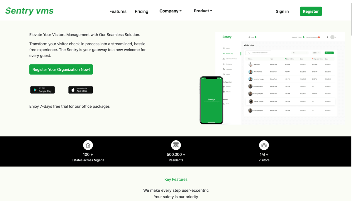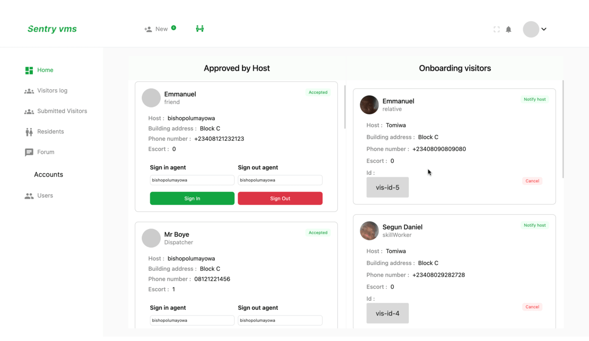 Sentry App is a cutting-edge visitor management app designed to simplify and secure the way you manage visitors at your premises. With Sentry App, you can effortlessly track and monitor visitor entries, exits, and movements, ensuring a safe and efficient experience for everyone.